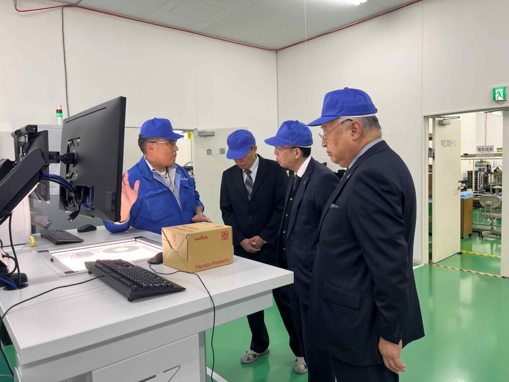 実装ラインのインライン型3D外観検査装置の集中管理エリアでの説明風景。